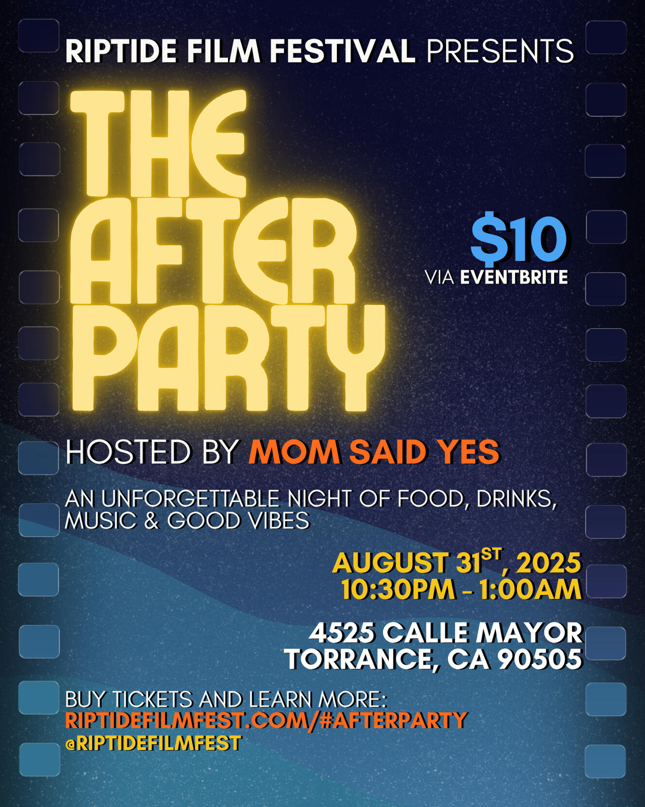 After the Credits Roll...When the final film fades to black, the night is just getting started! Join the 2025 Riptide Film Festival team and the incredible filmmakers behind the screen for a late-night celebration filled with food, drinks, music, and good vibes.Bring your friends, roll deep with your creative crew, or make new connections under the stars.Let’s end the festival on a high note—together.